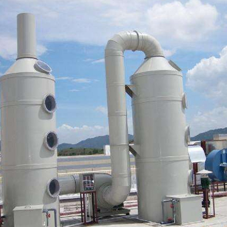 噴淋塔廢氣處理逆流工藝流程,即呈酸性或堿性的酸霧廢氣由風(fēng)管引入凈化塔,經(jīng)過填料層,廢氣從塔底送入,經(jīng)氣體分布裝置分布后與氫氧化鈉吸收液呈逆流連續(xù)通過填料層的空隙。在填料表面上,氣液兩相充分接觸吸收中和反應(yīng),以吸附廢氣中所含的酸性或堿性污物。酸霧廢氣經(jīng)過噴淋塔凈化后,再經(jīng)除霧板脫水除霧后將清潔氣體從風(fēng)機(jī)排入大氣。吸收液在塔底經(jīng)水泵增壓后在塔頂噴淋而下,而后回流至塔底被循環(huán)使用。
